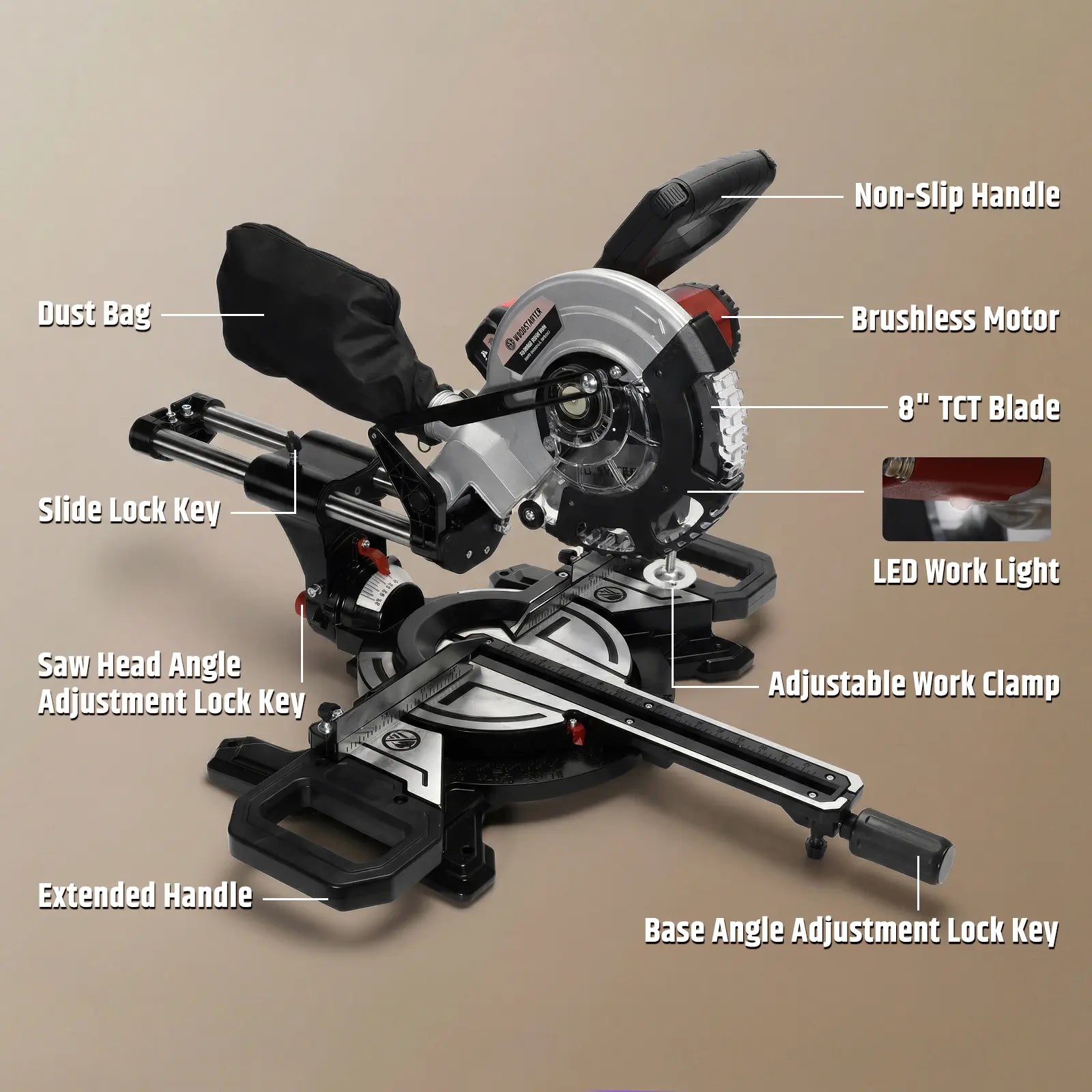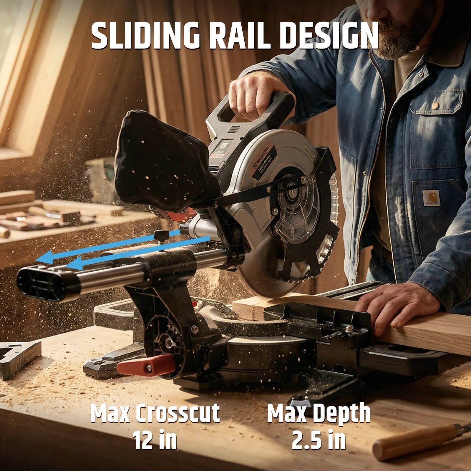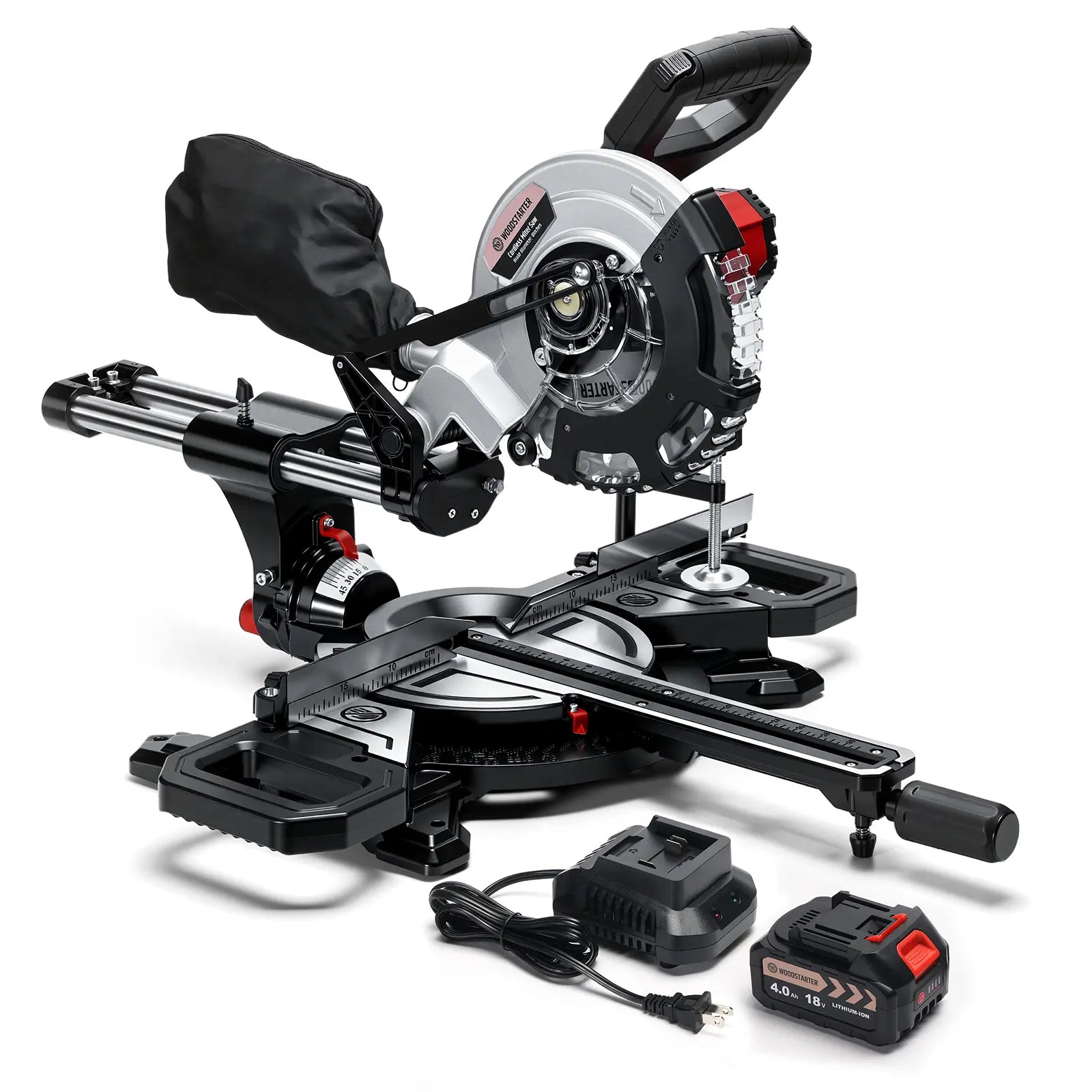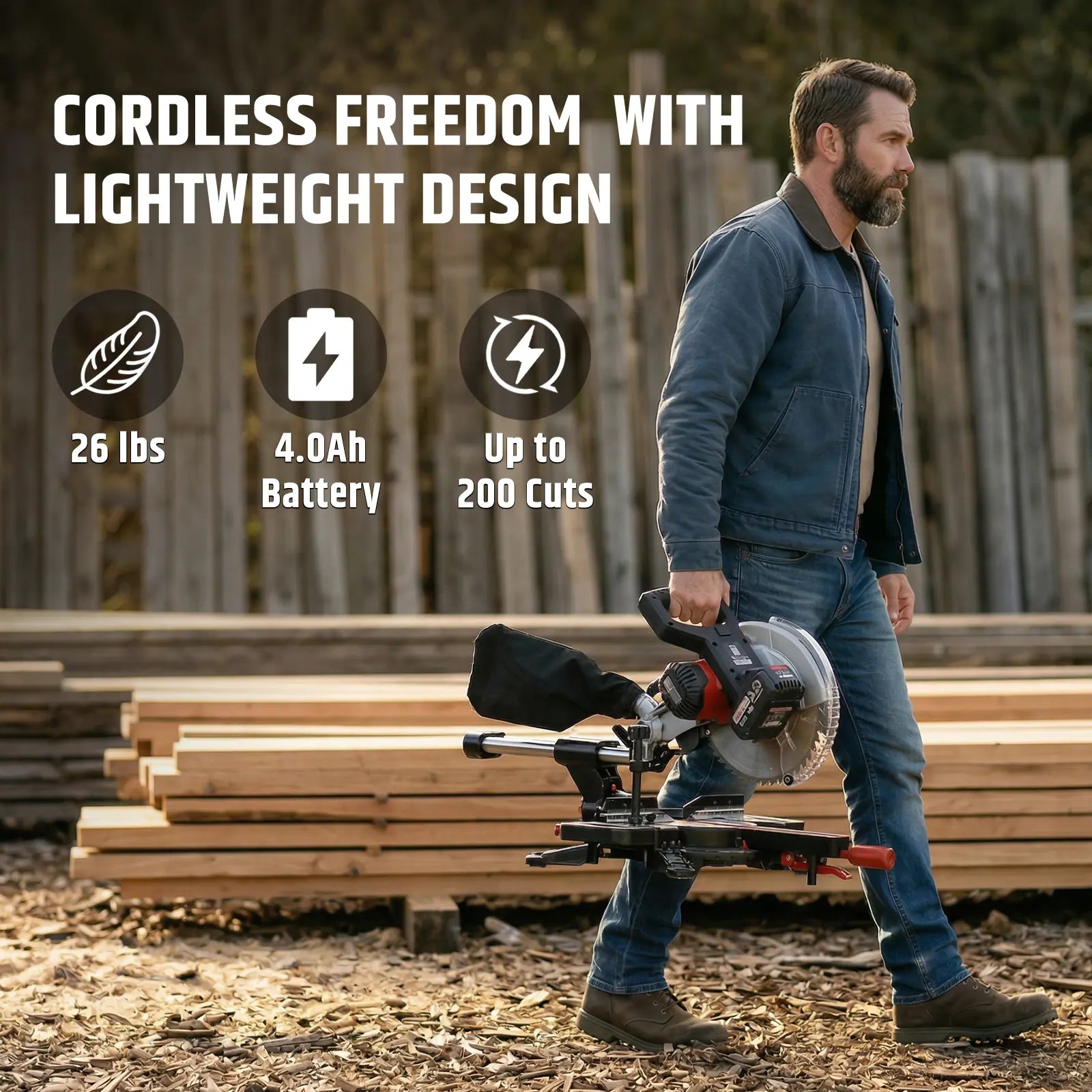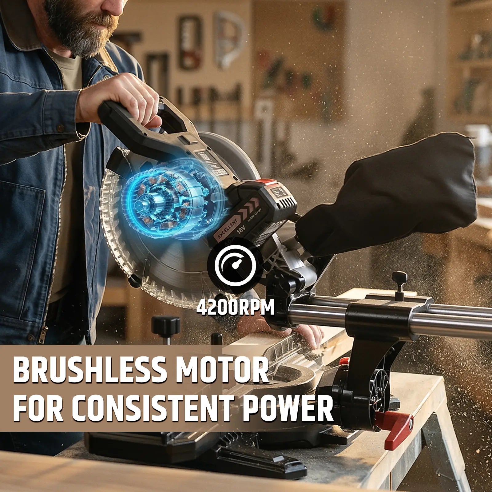 Cordless Miter Saw, Brushless Motor 4200 RPM, 12 in Crosscut, 2.5 in Depth, Single Bevel 45° & Dual Miter ±45°, Compact DIY Woodworking, Battery & Charger Included